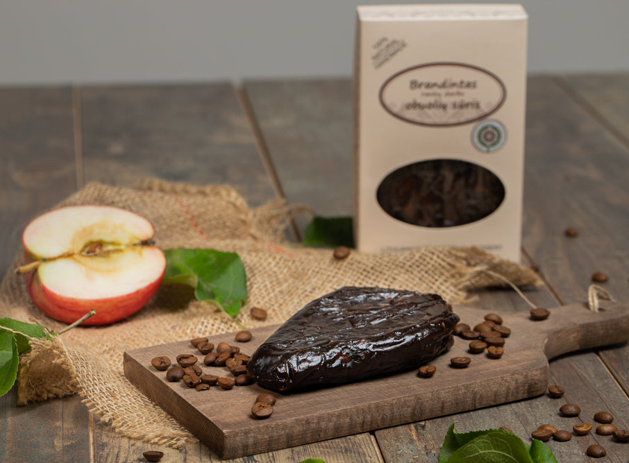 Autentiškas, daugiau nei 100 metų senumo mūsų šeimos receptūros obuolių sūris yra rankų darbo desertas, pagamintas tik iš lietuviškų obuolių. Kilęs iš viduramžių valdovų ir didikų dvarų, obuolių sūris atkeliauja ir ant Jūsų stalo. Vienas kilogramas šio deserto gaminamas net iš mažiausiai 5 kg išskirtinės kokybės obuolių. Naudojame tik šviežius lietuviškus obuolius, todėl gaminyje išlieka daug organizmui reikalingų medžiagų ir vertingų vitaminų.