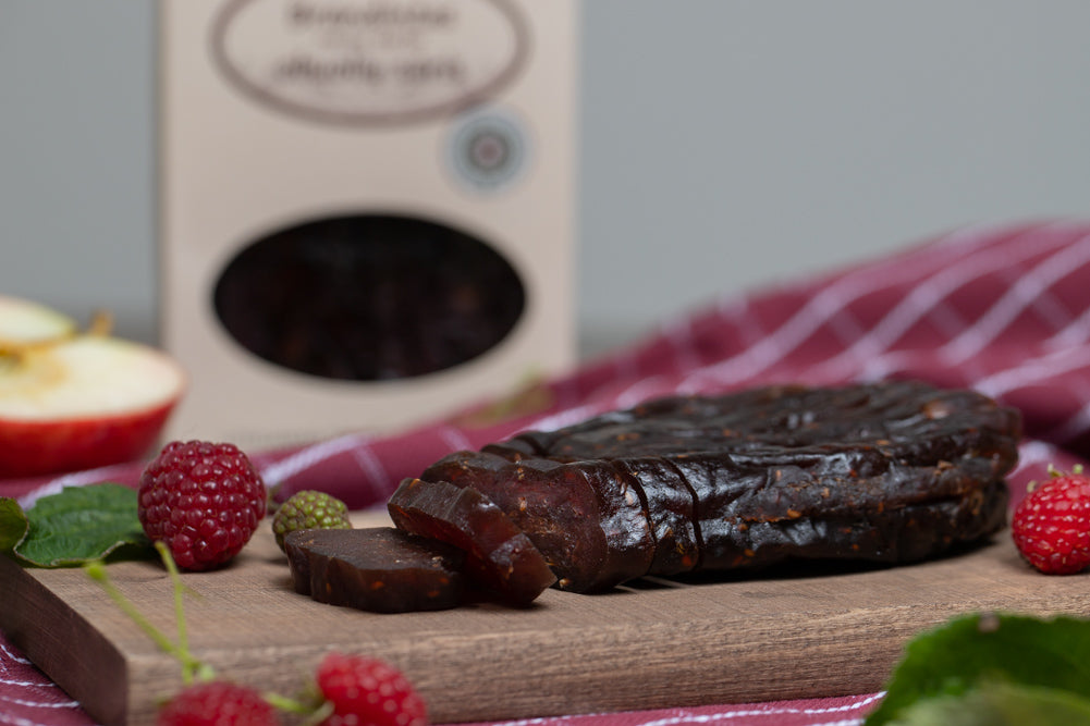 Gamyboje nenaudojame jokių konservantų ar sintetinių skonio stipriklio.Mūsų obuolių sūris gaminamas rankomis, džiovinamas ant malkomis kūrenamo pečiaus.